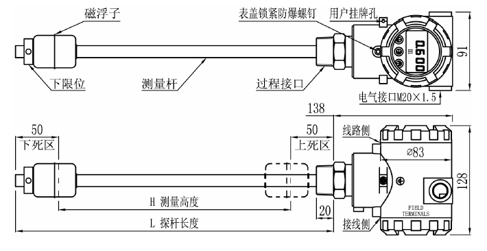 過程連接:DN50、DN80、DN100法蘭或M18×1.5、M20×1.5、G3/4"陽螺紋或特殊定制